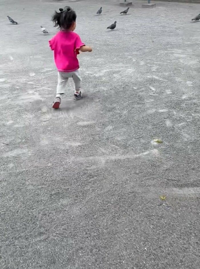 かと思えば、公園にいたハトを走って追いかけてみたりと、公園を余すことなく満喫!