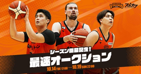 株式会社モバオク(本社:東京都渋谷区、代表取締役社長:小一原 宏樹、以下モバオク)がエンゲート株式会社(本社:東京都中央区、代表取締役:城戸 幸一郎、以下エンゲート)と業務提携し提供するスポーツチーム公式オークションサービス「スポオク」にて、B.LEAGUE所属の愛媛オレンジバイキングスが実施する『愛媛オレンジバイキングス シーズン開幕記念!最速オークション』を2025年10月14日(火)から開始します。