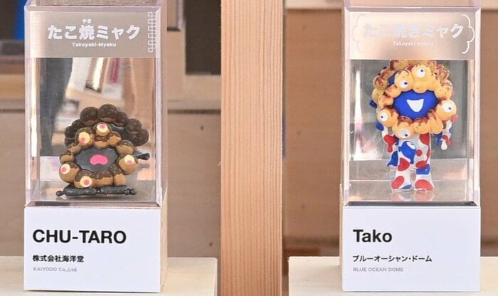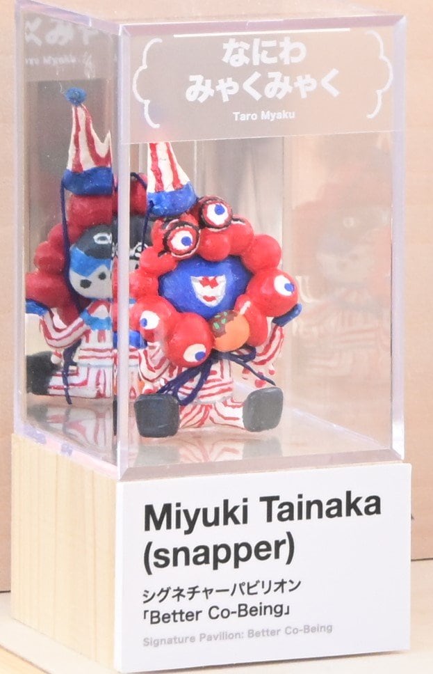 そして、特徴的な赤白ストライプの派手な衣装に、黒縁メガネもしっかりと再現された、大阪で愛される“くいだおれ太郎”をイメージした「なにわミャクミャク」や…。