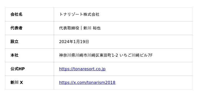 トナリゾート株式会社(https://tonaresort.co.jp)