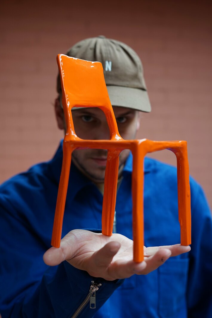 代表的なシリーズは、廃材として出た薪木などを使用し展開されるコレクション。工業的な生産過程だけではなく、人々の生活環境において排出される廃材木を、あえて工業用ペイントを使用しその質感をインダストリアルデザインの存在に帰化させることで、現代の過剰で、かつ限定的なアップサイクルの定義にエクスキューズを提案し、また即興的なインスピレーションで生み出される形状はアートとしての価値も持ち合わせています。自身のプロジェクトに加え、ハイネケン、G-Star、著名デザイナーからの依頼も手がけています。