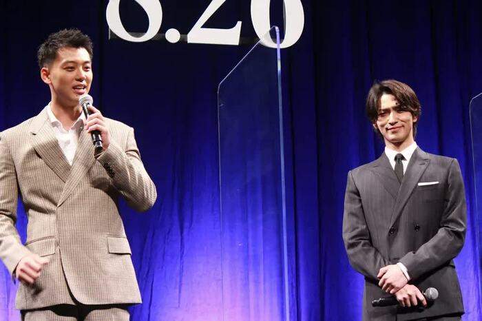 竹内涼真さんと横浜流星さんがW主演を務める映画「アキラとあきら」の完成披露舞台挨拶が8月8日に行われ、竹内さん、横浜さん、髙橋海人さん(King & Prince)、石丸幹二さん、ユースケ・サンタマリアさん、江口洋介さん、三木孝浩監督が登壇しました。