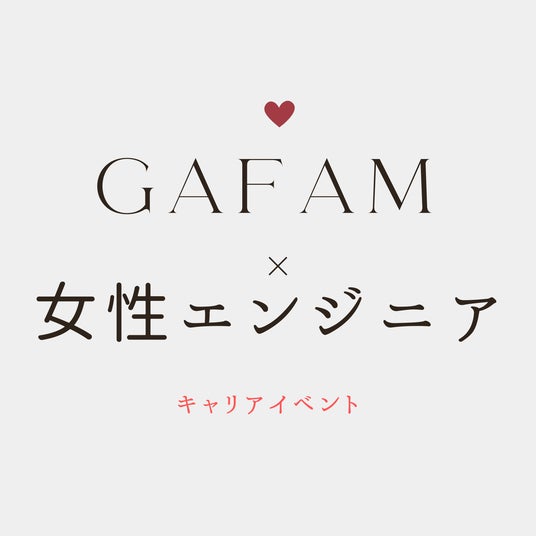 GAFAM × 女性エンジニアキャリアイベント世界のインターネット社会を牽引するGAFAM。その最前線で活躍する女性エンジニアたちが一堂に会する特別なイベントです。