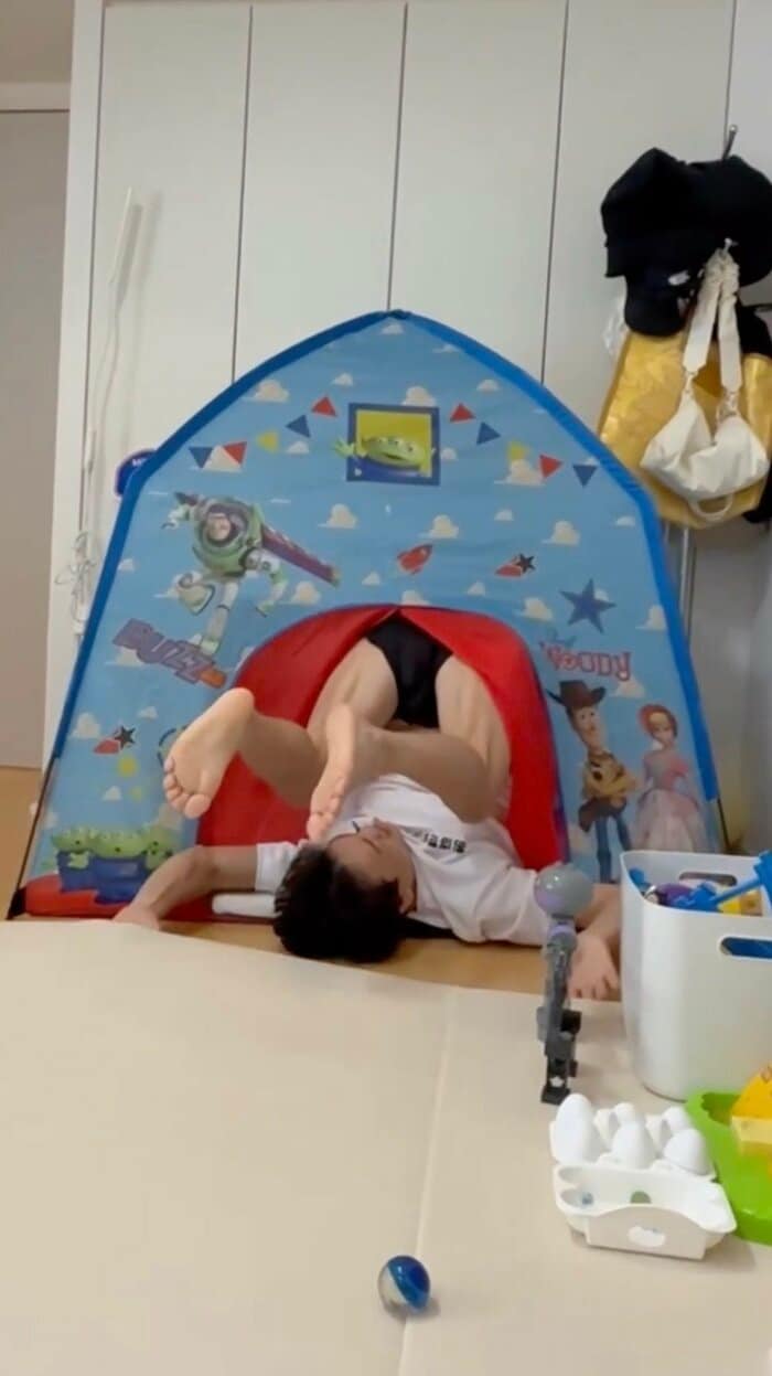 今回の投稿では「息子が痛いって言うから全力で痛いの痛いの飛んでいけしました!」とつづり、とある日常の様子を公開しています。