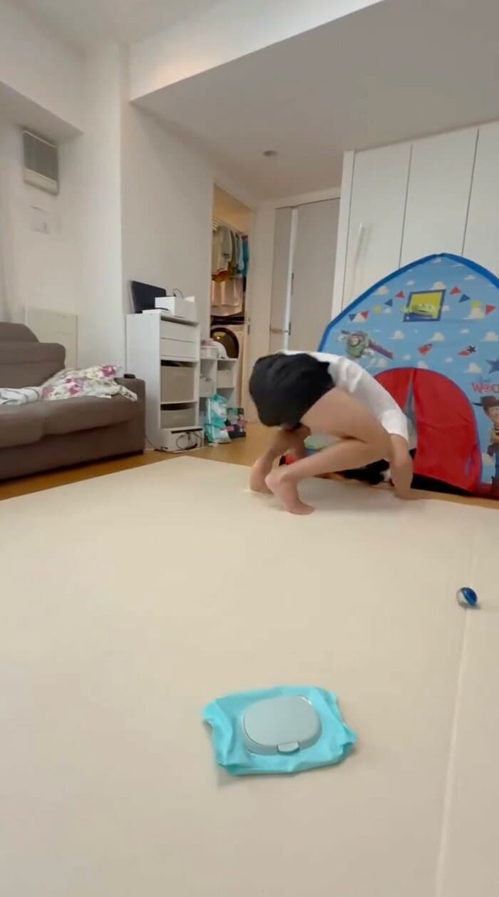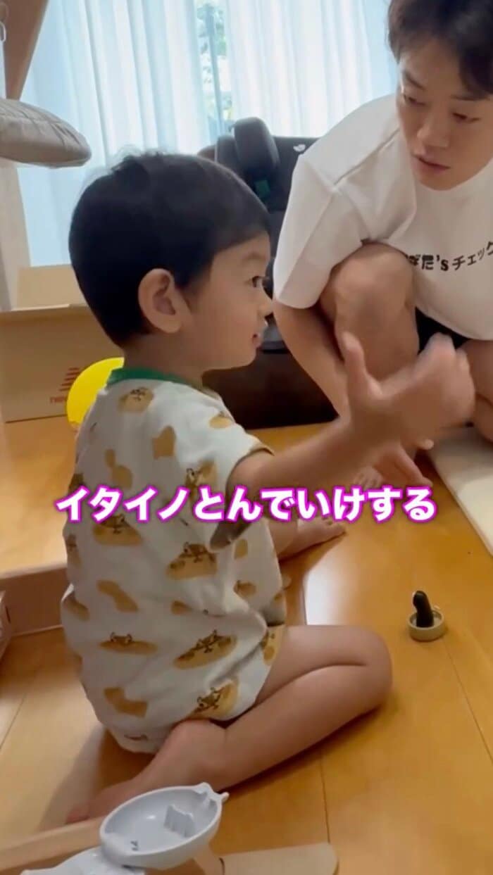 SNSからは「全力お父さん素敵すぎます!」「飛んでったパパの足筋すごい笑」「息子くんの落ち着いた対応笑」「パパとの温度差が笑える!」など注目の声が寄せられています。