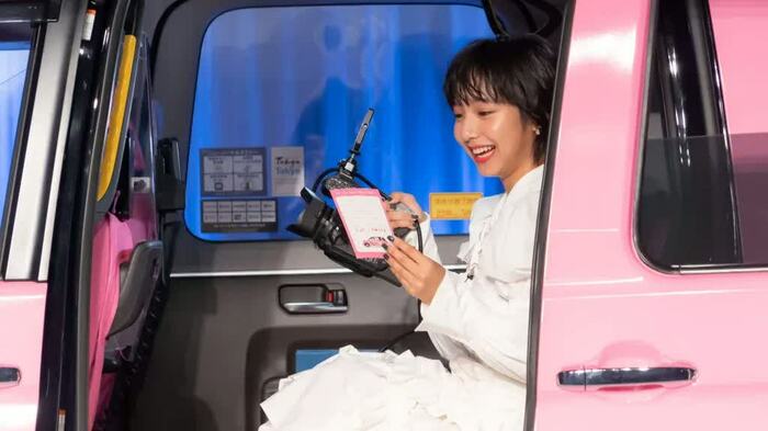 乗車式では、TWICEメンバーの写真がラッピングされたピンクの特別タクシーもお披露目。