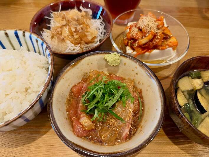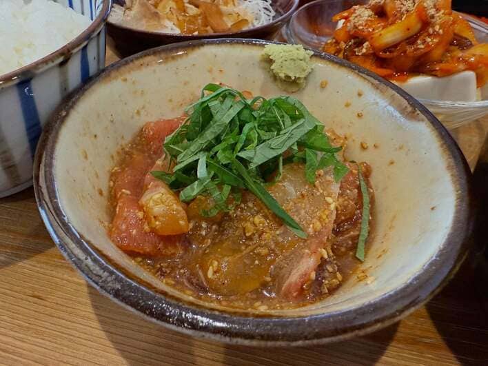 公開された写真には、和の雰囲気を感じるおしゃれな小鉢の中に、たれで漬けられた鯛とマグロが盛られているのが分かります!