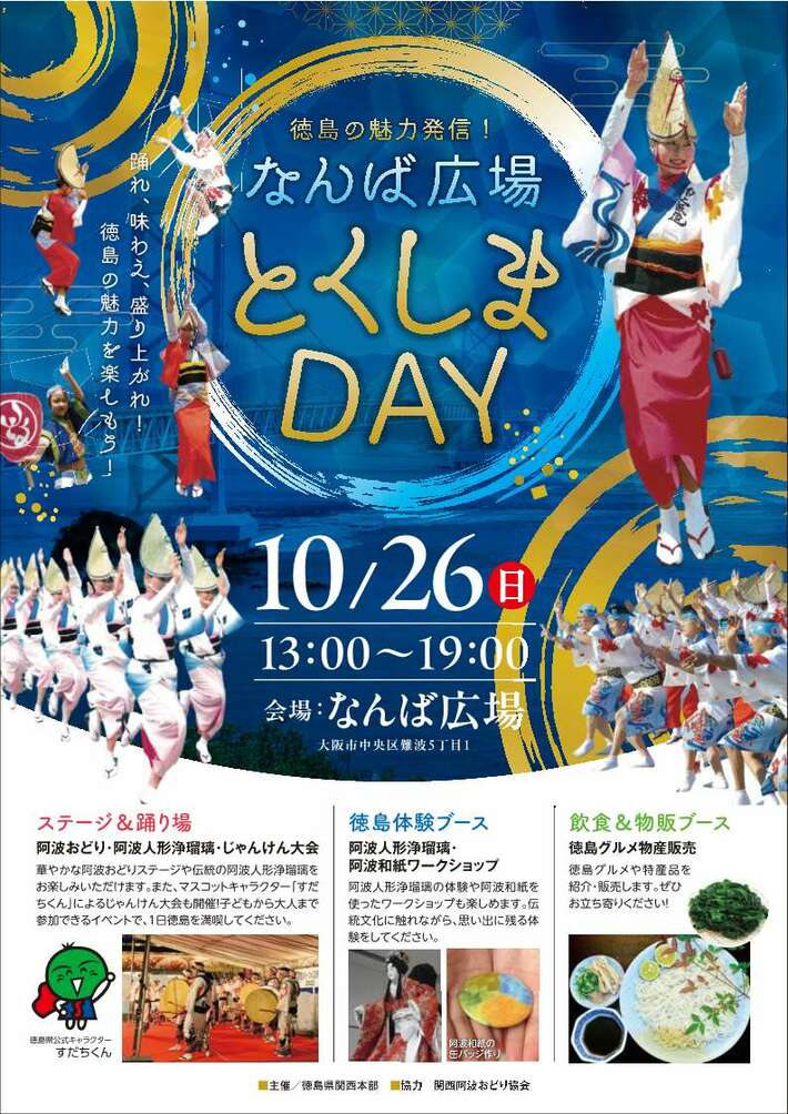 関西圏における本県のPRのため、多くの観光客で賑わう大阪ミナミの「なんば広場」にて、本県が世界に誇る伝統文化「阿波おどり」を軸としたPRイベントを開催します。
