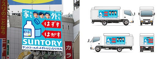 外でも、飲みきったらキャップをはずしてラベルをはがす、ペットボトルのきれいな分別を促進することを目的に、WEB動画公開と合わせて、「外でも、はずす!はがす!」と呼びかける渋谷センター街での巨大広告の掲示や渋谷エリアでのラッピングカーの走行を実施します。