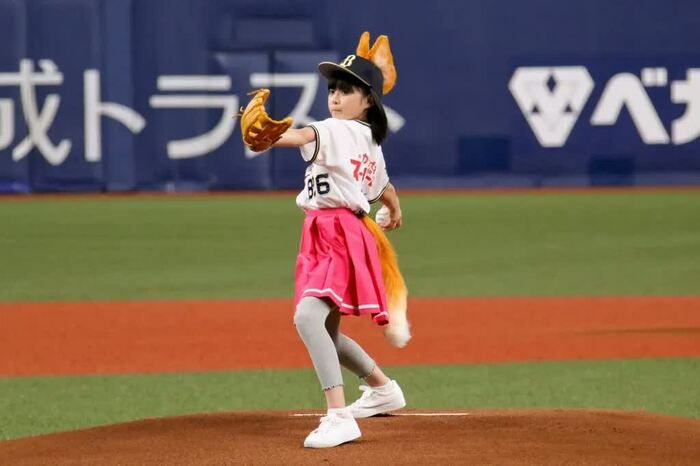 アニメーション映画「DC がんばれ!スーパーペット」の日本語吹替キャストを務める市川ぼたんさんが、8月9日に大阪・京セラドーム大阪で開催された、オリックス・バファローズ対東北楽天ゴールデンイーグルス戦の始球式に登板しました。