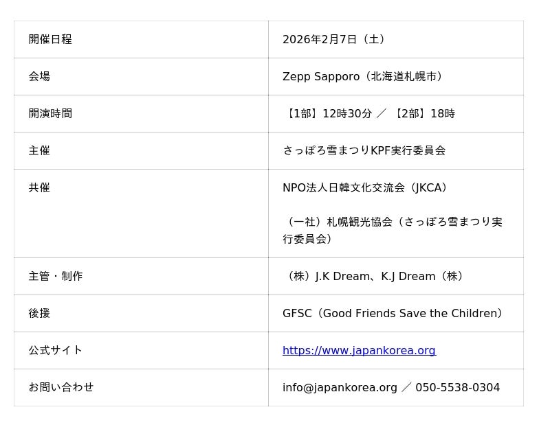 【「第76回さっぽろ雪まつり 17th KPF(K-POP FESTIVAL)2026」について】