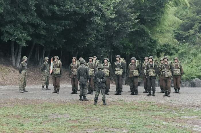 戦闘訓練後、演習場から駐屯地まで約25キロの道のりを歩く徒歩行動訓練が始まる。