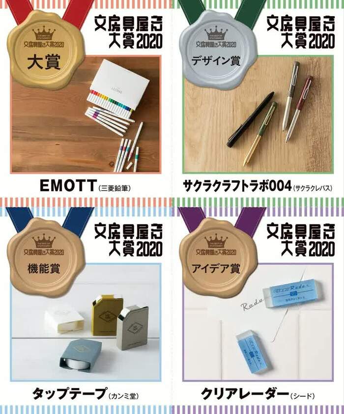 会場のステージでは、「文房具屋さん大賞2020」の授賞式が開催。2013年にスタートし、今年8冊目の刊行となったムック本「文房具屋さん大賞」(扶桑社)にて選出された各部門のナンバー1文具が表彰される。