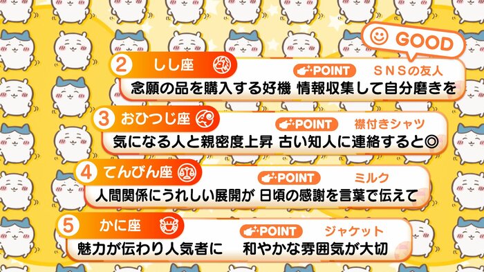 『めざましテレビ』で放送中の「ちいかわ占い」 テレビ放送がない日はお休みで、月~土:朝7時以降に更新予定です。