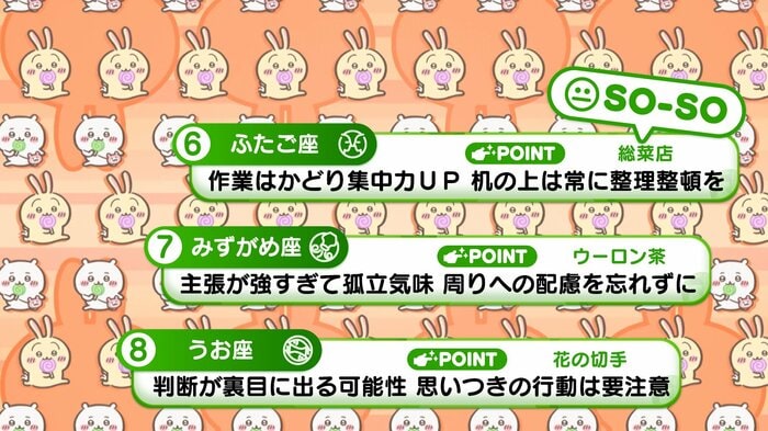 『めざましテレビ』で放送中の「ちいかわ占い」 テレビ放送がない日はお休みで、月~土:朝7時以降に更新予定です。