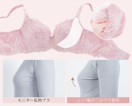 「シン・胸不二子ブラ」はそんな年齢を重ねたバストに特化したアンチエイジングブラ。加齢とともにバストの柔らかなお肉は脇や背中に逃げますが、そんなお肉をしっかりとキャッチし、「サイドすっきり&ツンと上向き」の若々しい立体的なバストをメイクする機能と、補整下着とは思えないおしゃれなデザインで、2022年7月の発売直後から大人気となり完売サイズが続出いたしました。