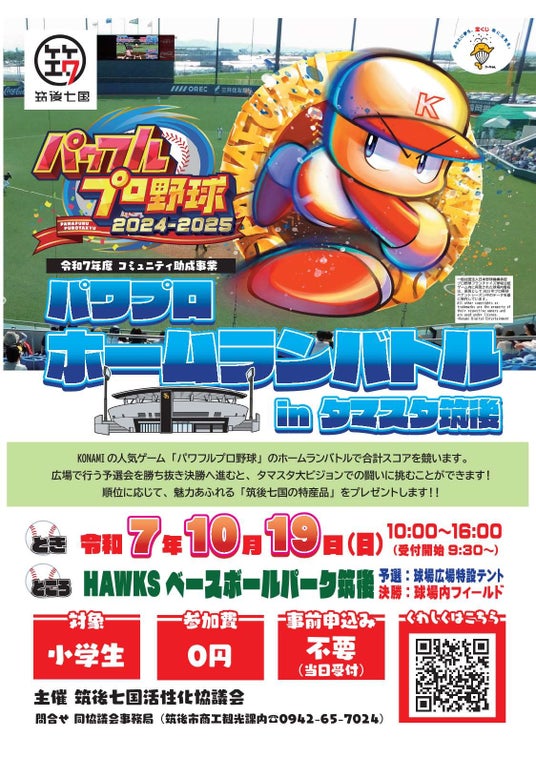 また、「パワプロホームランバトルinタマスタ筑後」も開催!KONAMIの「パワプロ2025」でのホームラン競争。決勝戦ではタマスタ筑後大ビジョンで白熱のバトルが繰り広げられます!