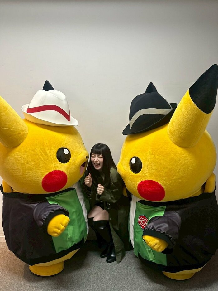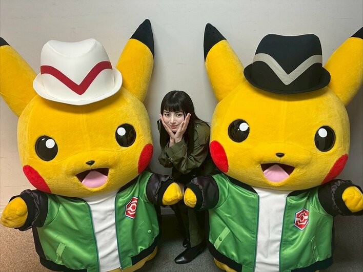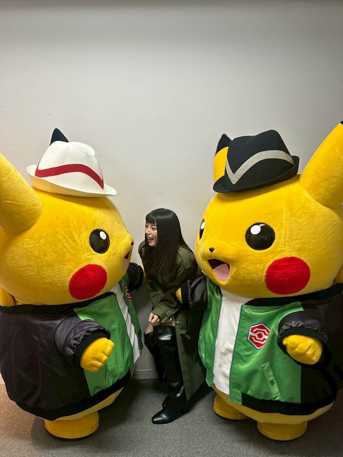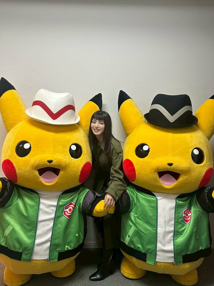 「なんと、スペシャルゲストで主人公とお揃い衣装のピカチュウたちが応援に駆けつけてくれました♡」とつづり投稿した写真には、前髪ぱっつんで綺麗なロング髪の池田さんの両隣に2匹のピカチュウが!