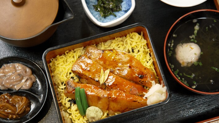ひとつの重で3度おいしい「金目鯛ひつまぶし重」は、最初は金目鯛とご飯を味わい、その後はうなぎのひつまぶしのように、お茶漬けも楽しめるというもの。