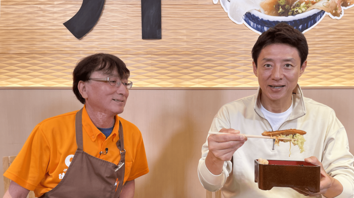 多くの観光客でにぎわう静岡県熱海市。平和通り熱海駅前商店街にある、「金目鯛とくぞう 熱海本店」を訪れた松岡さんは、金目鯛の広報課長・清水真人さんに「金目鯛ひつまぶし重」を紹介してもらいます。