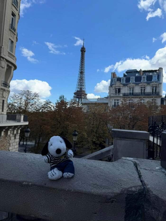 エッフェル塔が見える場所にちょこんと座らせたショットなど、シャッターがとまらなかったようです。