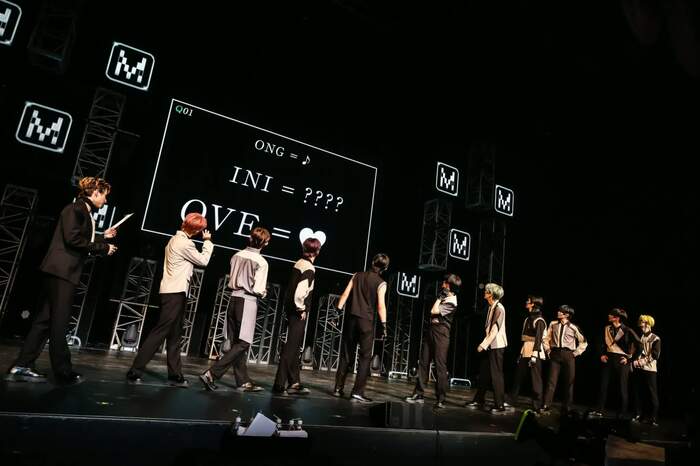 イベントの冒頭、INIは最新シングル「M」の収録曲「Password」をMINI(※INIファン)の前でパフォーマンス。そのまま息を切らしながらも自己紹介へと移りました。