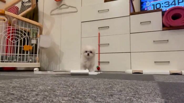 この動画は、動くものはなんでも追いかけるペシュちゃんを見て、飼い主さんが「スマホにも食いつくのでは?」と思い撮影したのが始まりなんだそう。