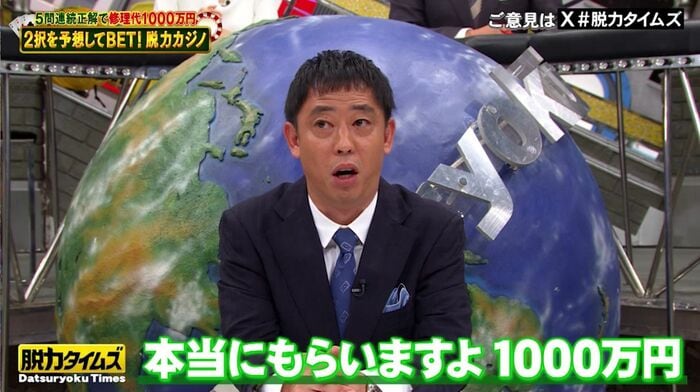 そこで、キャスターアリタが「1000万円稼げる方法がある」と提案。番組は、急きょ企画を変更し、修理費1000万円をかけた「脱力カジノ」を開催することになりました。