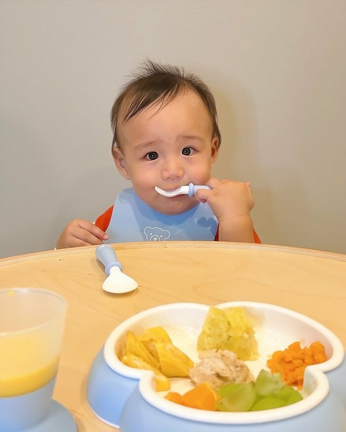 今回の投稿では「最近3回食になった息子」とつづり、陽太くんの食事タイムの様子を公開しました。
