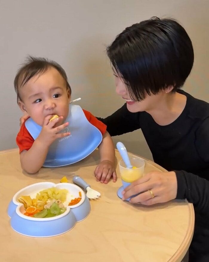 息子・陽太くん(0)が、ご飯をもぐもぐと食べるかわいらしい姿を公開しました。