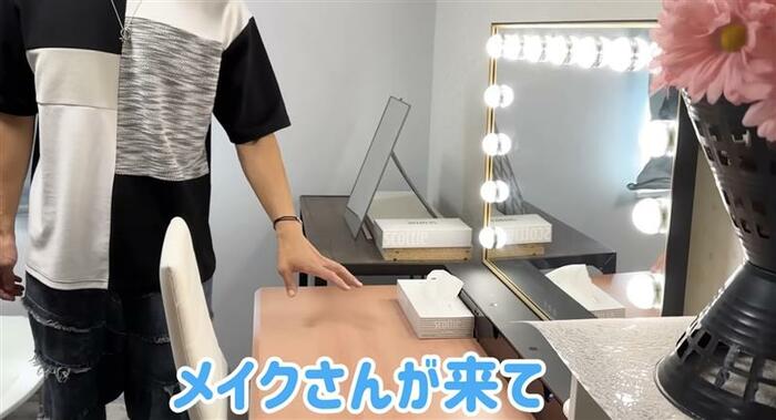 玄関の近くにある部屋は、現在はメイク室に。ハリウッドミラーが設置されていて、本格的にスタジオとして使いやすいように工夫しているようです。
