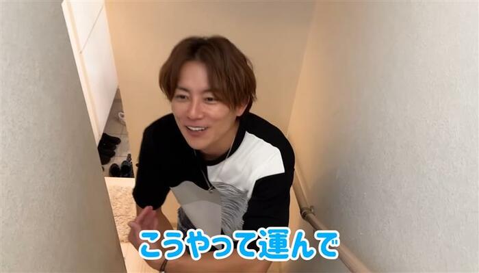 階段で下に降りる際には「下に寝室があったから せいと昊空を朝…寝てるせいたちをこうやって運んで、リビングまで連れてってましたね、6年間。もっとか!長い間運びましたね~」と、大忙しの朝の様子も語ります。