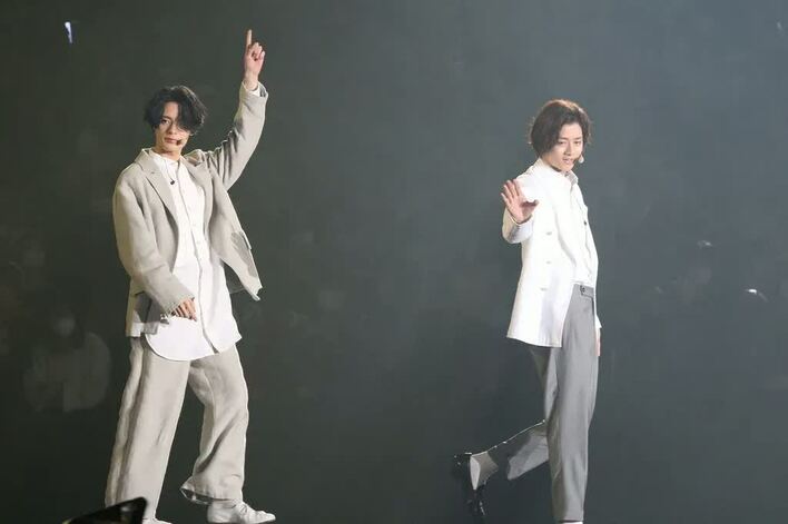 続いては「チーム生徒会」の佐野玲於と関口メンディーが登場。佐野が大柄なメンディーを従えるようなかたちで手を振りながらまさに生徒会長といった風情で花道を悠々と歩き、メンディーはコミカルな動きでお茶目さもしっかりとアピール。