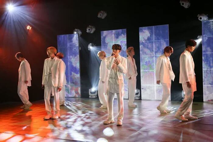 世界さん、佐藤大樹さん、澤本夏輝さん、瀬口黎弥さん、堀夏喜さん、木村慧人さん、八木勇征さん、中島颯太さんの個性豊かなメンバー8人が「めざましライブ」のステージを彩りました。