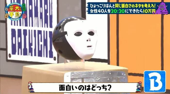 最後のお題「面白いのはどっち?」には、ひょっこりはんが登場。