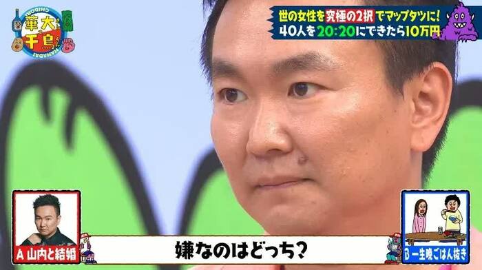 「嫌なのはどっち?山内と結婚or???」というお題では、選択肢Aに「山内と結婚」が用意されており、もう一つの選択肢Bを考えました。