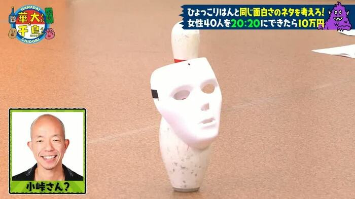 滝沢さんは、ボーリングのピンと仮面を、小峠英二(バイきんぐ)さんに見立てたようで、「こう見えてるの?小峠さんのこと」「頭の部分だけやん」とツッコミが飛び交いました。