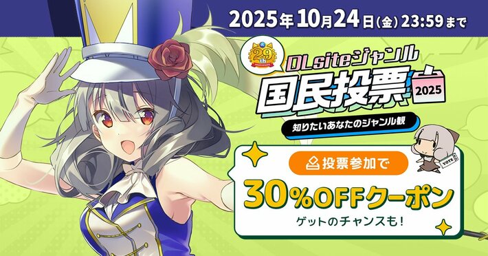 二次元コンテンツのダウンロード販売サービス『DLsite』(株式会社エイシス、東京都千代田区、代表取締役:藤井純)は、毎年11月に『創業祭』と題して多彩な催しを行っています。本年も様々な企画をご用意しているなか、まずは第一弾として「DLsiteジャンル国民投票2025 知りたいあなたのジャンル観」を開催します。