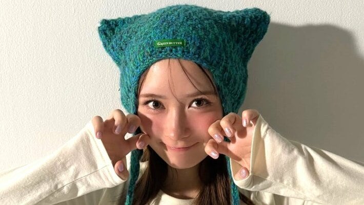 猫耳ニット帽をかぶったショットでは、ニャーというように両手を頬に添えたおちゃめな姿も。「イタズラしちゃうぞ」と言わんばかりの上目遣いでこちらを見つめる畑さんに、ドキッとしてしまいますね。