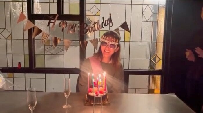 美紀さんはろうそくを吹き消すと、「ありがと~!」と満面の笑み。最後は、みんなで拍手をし、あたたかい雰囲気のまま動画は終了しました。