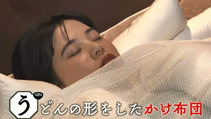うどんの形をした「かけ布団」!!!!!!その全貌は放送まで楽しみにしていただきたいのだが、この布団、結構使い勝手も良さそうなのと、保温効果もあるとのことで驚いた。