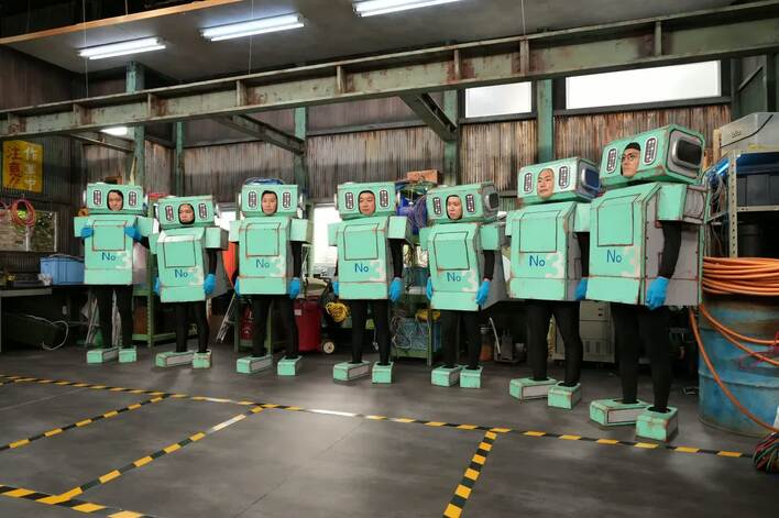 たどり着いたとある倉庫に、タングによく似た、メインキャストたちが演じる7体のロボットたちが。