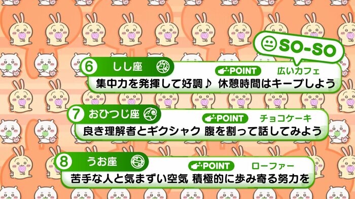 『めざましテレビ』で放送中の「ちいかわ占い」 テレビ放送がない日はお休みで、月~土:朝7時以降に更新予定です。