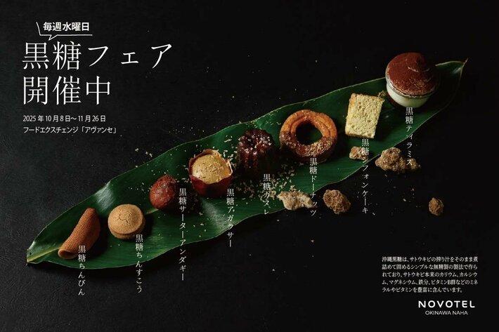 ノボテル沖縄那覇(沖縄県那覇市 坂本 公敏 総支配人)では、沖縄県黒砂糖協同組合が実施する沖縄県産黒糖の魅力再発見と需要・認知拡大を目的とした「沖縄黒糖フェア」に参画し、ただいま期間限定スイーツを提供しています。