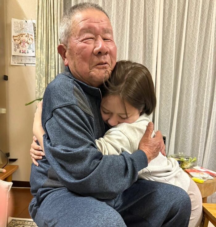 「ぎゅ~っ」という音が聞こえてきそうな程、祖父母としっかりハグをしている幸せいっぱいな写真を投稿!