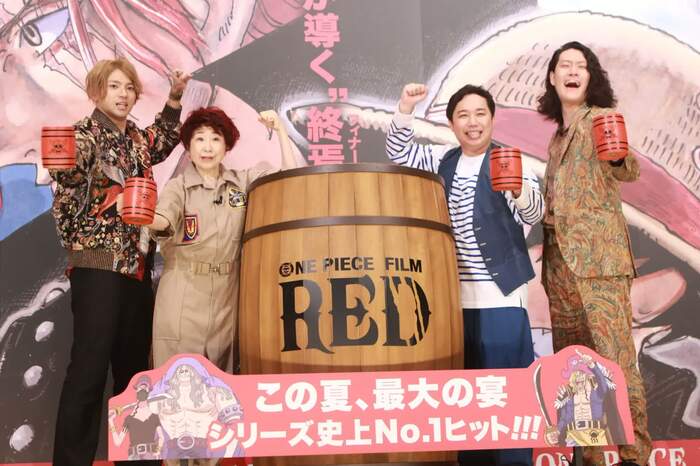 イベントでは、フォトセッション時に「ONE PIECE FILM RED」と書かれた樽(たる)がステージに用意される場面が。