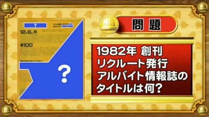 最後は、創刊号の問題。今から40年前の1982年に創刊された、リクルート発行のアルバイト情報誌のタイトルとは?