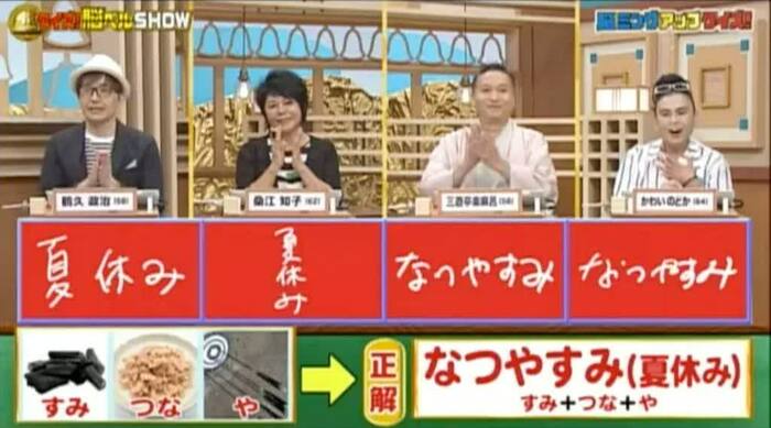 正解は「なつやすみ(すみ+つな+や)」。見事に全員正解!