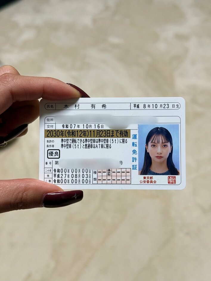今回の投稿で「免許証更新!」とつづり、免許証を更新したことを報告したゆきぽよさん。