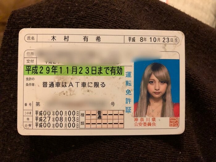 そして、その5年後に更新したときの免許証では、背景がピンク色になり、髪形も少し落ち着いた黒髪で毛先にメッシュを入れたスタイルに。